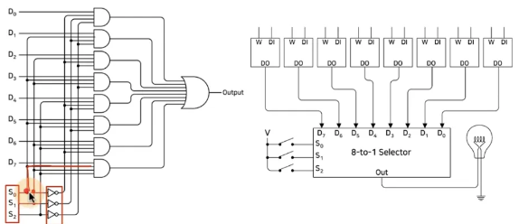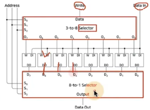 - 3-to-8 decoder와 8-to-1 selector로 구성(이게 바로 주소=Address)