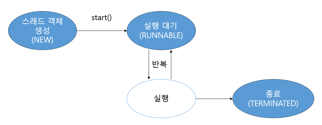 1. 스레드(스레드 제어)스레드 객체를 생성하고 start() 메서드를 호출하면 언제든 실행할 준비가 되어 있는 '실행 대기 상태'가 됨-> 운영체제에서 실행 대기 상태 스레드 중 하나를 선택하여 '실행 상태'로 만드는 것실행 상태의 스레드는 run() 메서드를 모두 실행하기 전에 다시 실행 대기 상태로 돌아갈 수 있고,실행 대기 상태에 있는 다른 스레드가 선택되어 실행 상태가 되기도 함 run() 메서드의 내용이 모두 실행되면 스레드의 실행이 멈추고 종료 상태가 됨 1) 스레드 상태 (Thread States)자바에서 Thread.State 열거형(Enum)은 총 6가지 상태를 정의상태설명NEW 스레드 객체가 생성됐지만 아직 start()가 호출되지 않음RUNNABLE실행 준비 완료 상태(JVM이 스케..